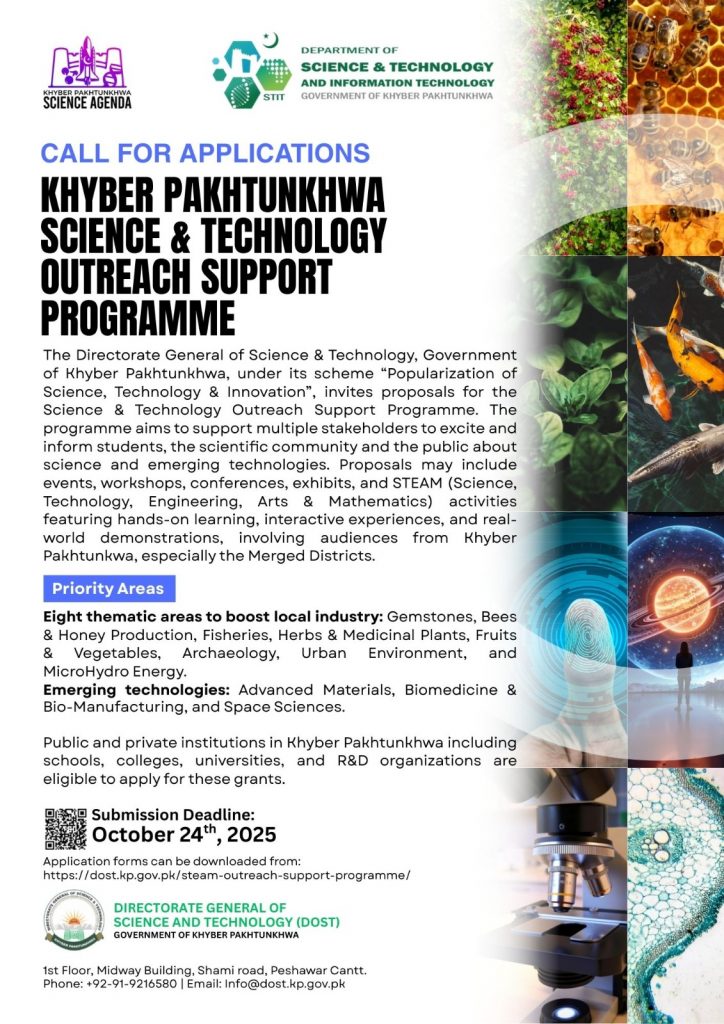 The programme will support events and trainings – from capacity building workshops for policymakers and scientists to activities such as art exhibits and star-gazing evenings for the general public – that help promote and further develop the science and technology ecosystem in Khyber Pakhtunkhwa at all levels.